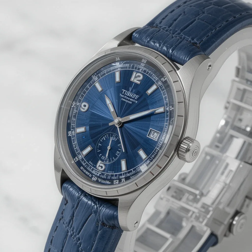 Affordable luxury with vintage charm. The PRX’s integrated bracelet and deep blue sunburst dial offer a timeless appeal.